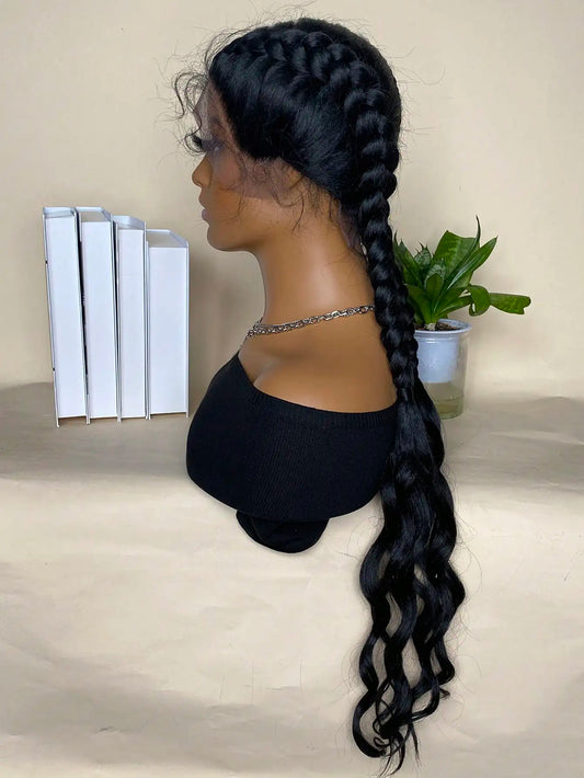 36” Cornrow Braided Full Lace Wig – Synthetic with Baby Hair